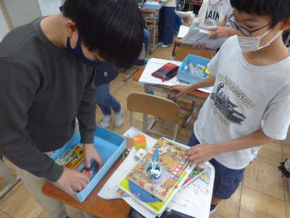 家庭科の学習で整理・整頓の大切さを学習しました。自分の身の回りを綺麗にするために工夫できることを考え実践しました。整頓されたお道具箱は気持ちがいいです。