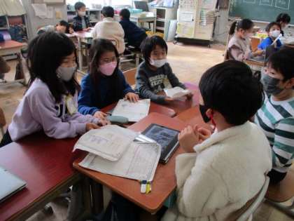 2年生は前回、町探検で調べたことをクラスの中で伝え合いました。