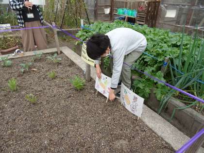 おひさま学級 「おひさま畑の看板を設置しました」 公開日 2022/12/02 更新日 2022/12/02 おひさま学級 おひさま畑で冬野菜を育てています。かぶやほうれん草、にんじんの種から芽が出て、子どもたちは嬉しそうでした。早速、冬野菜の看板を作り、おひさま畑に設置しました。冬野菜の生長が楽しみです!