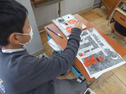 版画もどんどん完成に近づいてきました。色が入るとすごく奇麗です。