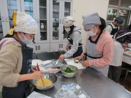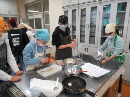 家庭科の「まかせてね今日の食事」の学習では、栄養のバランスを考えて1食分の献立を考え、グループで調理計画を立てました。計画をもとに仲間と協力し、安全に調理することができました。「おいしい」「上手にできた」「少しこげた」など、満足そうに話していました。
