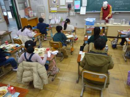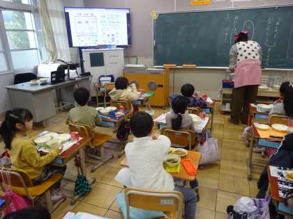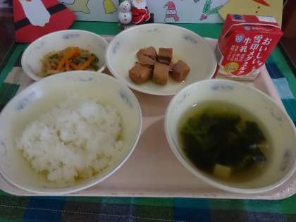 今日の給食は、ごはん・牛乳・なま節のしょうが煮・野菜のきんぴら・すまし汁でした。なま節は、かつおからできています。たんぱく質・鉄分を豊富に含んでいます。給食室で朝からじっくり炊いて作りました。しょうがの風味で、ごはんもよくすすみました。今日もごちそうさまでした!!