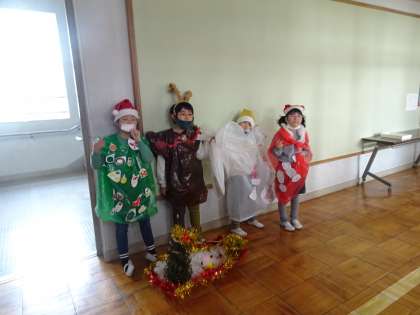 今日、1回目のプレゼント配布を行いました。緊張しながらも自分の言うべきセリフを発表したり役割を果たしたりすることができ、子どもたちは良い表情をしていました。次回は19日の配布です。うまくいきますように!!
