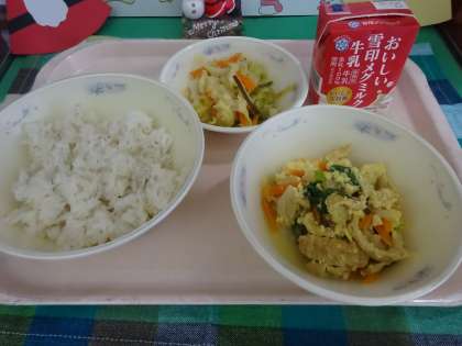 今日の給食は、麦ごはん・牛乳・あげたま煮・ごま酢煮(ゆず)でした。今日のごま酢煮には、ゆず果汁を使っていました。ゆずのさわやかな香りが広がっていました。