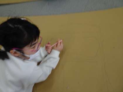 3学期がスタートしました!おひさま学級の子どもたちが元気に登校し、冬休みについてのお話を楽しそうにしてくれました。今日は、3学期の始業式を行った後に、3学期の目標を一人ひとり考えて目標を作りました。その後に、大きなダンボールを使って京都市バスの絵を鉛筆で描きました。このバスは、生活単元学習で取り組んでいる「おひさま のりものにのってでかけよう!!」の学習で使います。どんなバスになるのか今後の完成が楽しみです。