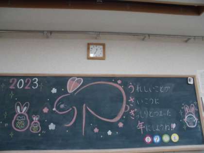 今日の黒板に書いたような「うれしいことが さいこうに ぎっしりとつまった年にしようね!!」の2023年うさぎ年であって欲しいなと思います。今年もどうぞよろしくお願いします。