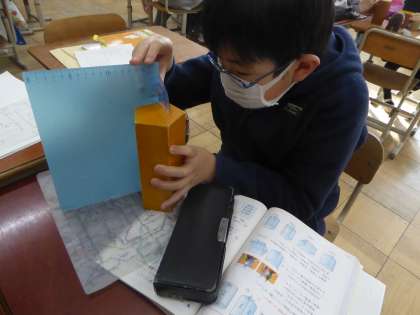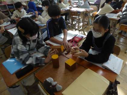 5年生 算数科〜角柱と円柱〜 公開日 2023/02/02 更新日 2023/02/02 5年生のページ 角柱と円柱の特徴を調べました。垂直や平行になっている部分や多角形など、特徴はたくさんありました。