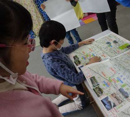 お客様を招待して2回発表を成功することができたおひさま学級の子どもたち。子どもたちの学習に時々登場するレインボーマンから今朝、大きな封筒が届きました。教頭先生が、その大きな封筒を持って、おひさま学級へ届けに来てくれました。大きな封筒の中には、なんと新町小学校から南の場所の地図が入っていました!子どもたちは大喜びでした!子どもたちで、出かける場所を決めて、行き方を調べて3月に出かける予定です。南の地図を見ながら「どこに行きたい?」と言いながら学習している様子が見られました。