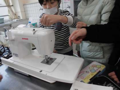 おひさま学級 交流5年 「ミシンにトライ!」 公開日 2023/02/08 更新日 2023/02/08 おひさま学級 交流学級の友だちと一緒に、ミシンの学習を行っています。グループの子どもたちと一緒に、一つひとつ確認しながらミシンの練習をすることで、上手になってきています。次回は、ランチョンマット作りに挑戦します!