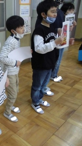 今日は上京中学校ブロックの小学校のみんなと上京中学校の育成学級のみんなと一緒に「冬の集い」を行いました。今年度は、オンラインでの交流ではなく対面での交流でしたので、子どもたちは少しドキドキしているところもありましたが、新町小学校の自己紹介の場面では、自分の名前と好きな○○を紹介カードを提示しながら紹介することができました。