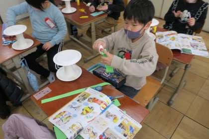 図工ではかみざらころころという学習を始めました。 どんな作品ができるか楽しみにしていてくださいね!!
