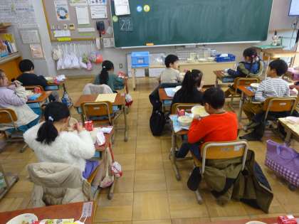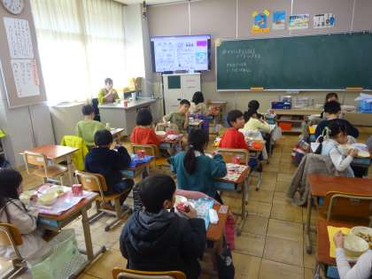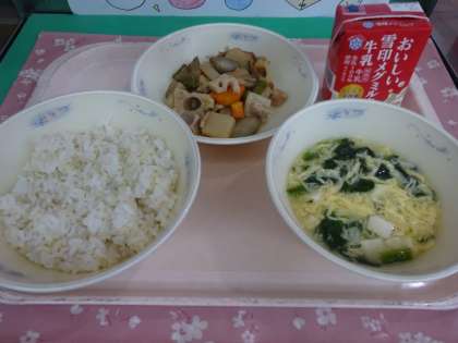 給食の献立は、麦ごはん・牛乳・筑前煮・かきたま汁でした。