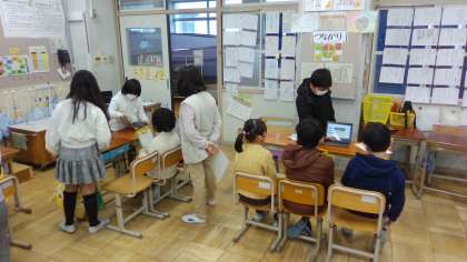 3年生の子どもたちは、4年生が学習してきたわくわく学習についての発表を聞きに行きました。4年生が環境について学んだことを発表する姿を見て、自分たちも環境を大切にしていきたいと思ったようです。