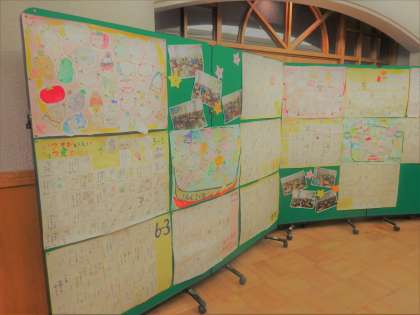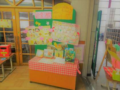 ランチルーム前には、給食週間での各クラスで取り組んだ素敵な掲示物が飾られています。好きな給食について書いてあったり、調理員さんへの感謝の気持ちを表したり給食について考え直すきっかけになりました。