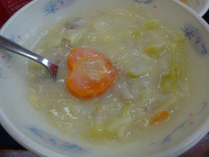 いつものルーは小麦粉を使って作っていますが、今日のクリーム煮は「米粉」を使って作りました。あっさりとしていて、やさしい味わいです。具だくさんのクリーム煮で、寒い季節にぴったりでした。