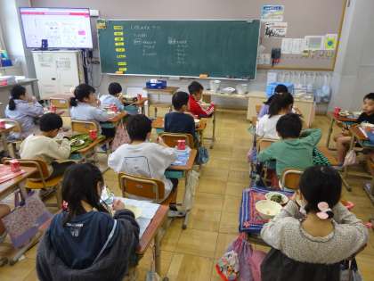 1年生も、給食2日目ですが当番のお仕事も慣れてきている様子で、積極的にお仕事をしようとする姿もみられました。