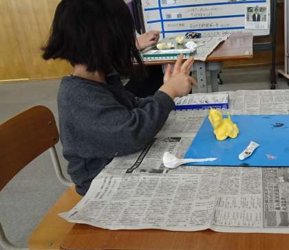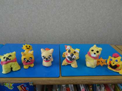 おひさま学級 図工「おひさま学級のキャラクターを作りました」 公開日 2023/04/18 更新日 2023/04/18 おひさま学級 図工の時間に、おひさま学級のみんなで考えた今年度のおひさま学級のキャラクター「おひさま1(ワン)ちゃん」を紙粘土で作りました。子どもたちは、おひさま1ちゃんの特徴を捉えながら作っていました。おひさま学級に作品を展示していますので、ぜひご覧下さい。