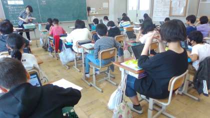 「天気の変化」についてGIGA端末を使いながら学習をしています。雲の様子について、写真を使ってしっかりと学習することができました。