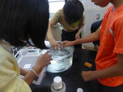 窒素や酸素はどのように燃えるのだろうか。グループで協力して実験を通して確かめました。