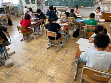 2人〜3人でグループになり,部屋の看板書きをしました。