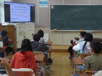 憲法月間の取組として校長先生のお話を聞きました。基本的人権の尊重は社会科で学習しているのでイメージが付きやすかったようです。「きまり」について考えたことも交流しました。
