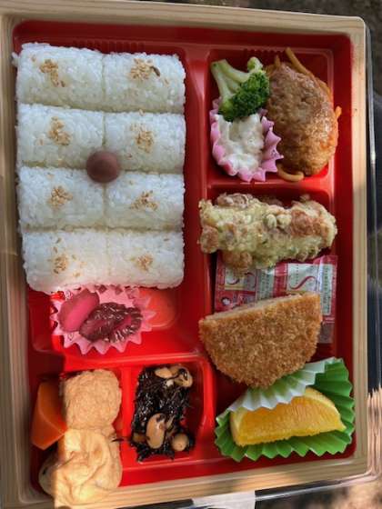 お昼です。お弁当です。 天気も良く気持ちがいいです。