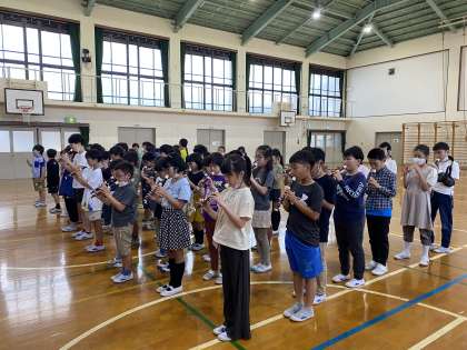 4年生 「1年生と仲良くなる会」 公開日 2023/05/16 更新日 2023/05/16 4年生のページ 体育館で「1年生と仲良くなる会」の練習をしました。1年生と仲良くなるためにみんなで1年生に言葉を伝えたりリコーダーを吹いたりしました。明日の本番も頑張りましょう。