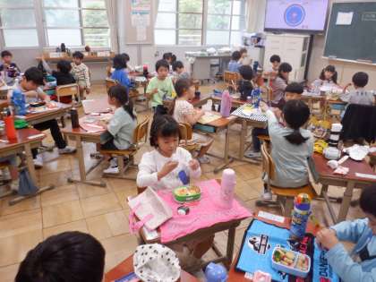 【1年】みんなでおべんとう! 公開日 2023/05/22 更新日 2023/05/22 学校の様子 19日(金)は、朝早くからおべんとうを作ってくださってありがとうございました。校外学習は延期になりましたが、みんな嬉しそうにお弁当を食べていました。 「また食べられるよ!」と伝えると「やった〜!」と大喜びでした。また26日(金)にもお弁当が必要ですので、よろしくお願いいたします。