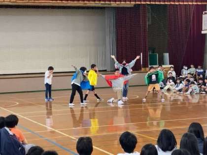 児童朝会 公開日 2023/05/25 更新日 2023/05/25 学校の様子 体育館に全校児童が集まり、児童朝会を行いました。児童会委員会と安全委員会の発表がありました。劇やクイズなど工夫して全校のみんなに伝えたいことを発表していました。