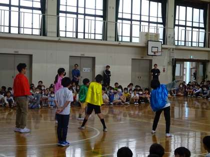 みんなが集まって行う朝会を経験していないにも関わらず、低学年の子どもたちもいい姿勢、態度で聞いていました。