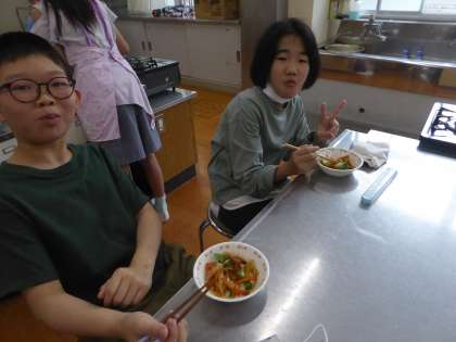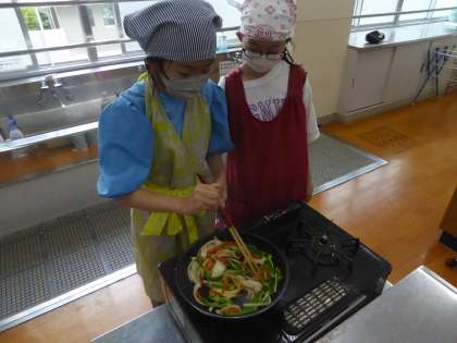 今日の調理実習は6年1組でした。手際よく協力して調理することができました。