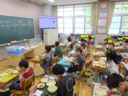 今日は、そのスチコンを使って鶏肉を焼きました。中はふっくら、表面は香ばしく焼くことができます。そのおいしさに、子どもたちもにっこり笑顔になっていました。