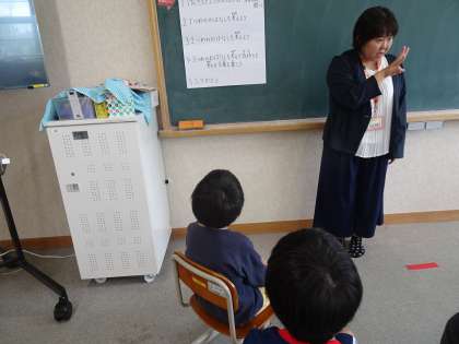 道徳「げんきだしていこう!のおまじない」の絵本から、落ち込んだり、困ったりしたときに、気持ちを切り替える言葉について、みんなで考えました。お話の様子を感じ取りながら、こんな時にはどんな言葉をかければいいかな?と考えたり、自分だったらどうかな?と考えたりしていました。このお話は、まだ続きます。