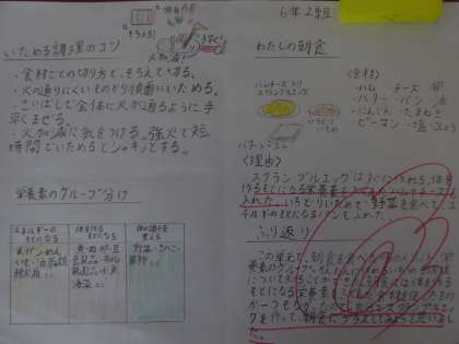家庭科の学習で取り組んできた「朝食から健康な一日の生活を」が終わりました。一人一人が学習してきた内容をまとめています。栄養バランスを整え、手早く作れる朝食に挑戦してみたいという声が多かったです。