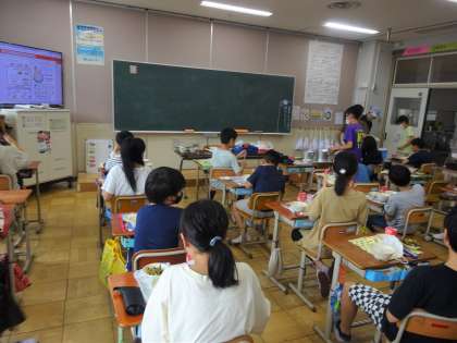 高野どうふと野菜のたき合わせは、けずりぶしでとった出汁で高野どうふを別炊きしています。中間休みくらいには、1階そして2階までもおだしのいい香りが広がっていました。子どもたちもおだしのいい香りに惹かれていました。