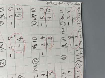 算数の学習でひっ算に取り組んでいます。
