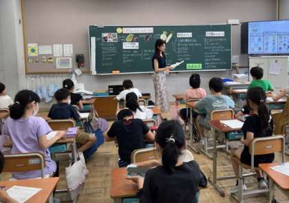栄養教諭に、京野菜について教わりました。京野菜とふつうの野菜の違いを見つけて、京野菜のよさについて発見することができました。給食で食べるのをとっても楽しみにしていました。