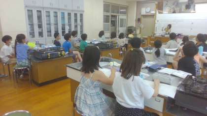 4年 「とじこめた空気と水」 公開日 2023/07/10 更新日 2023/07/10 4年生のページ 家庭科室を使ってとじこめた水について調べました。子どもたちは水を力いっぱい押し込む姿が見られました。「押しても押し返される。」など楽しく学習している様子でした。