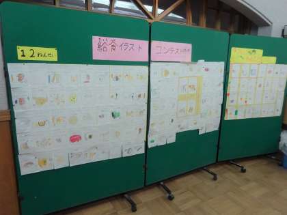 全校の子どもたちからたくさんの素敵なイラストが集まり、給食室前に掲示をしました。保護者のみなさまも、ご来校の際、ぜひご覧ください。