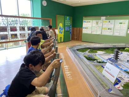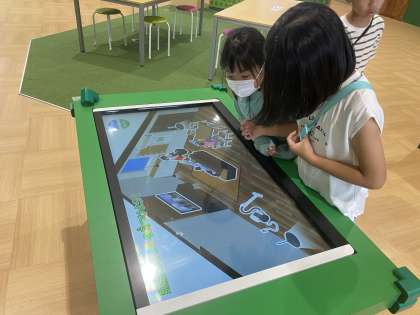 南部クリーンセンターでごみについて学習をしました。今まで学習したことを改めて実際に見たり、初めて知ったこともあった様子でした。最初のブースは、ごみについてのクイズや足踏みをして電車のジオラマを走らせる活動もしていました。