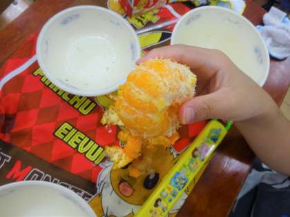 みかんは、冷たくてシャーベットのようで、皮をむくだけでも体が涼しくなっていたようでした。冷たい!と言いながら食べている姿がたくさん見られました。