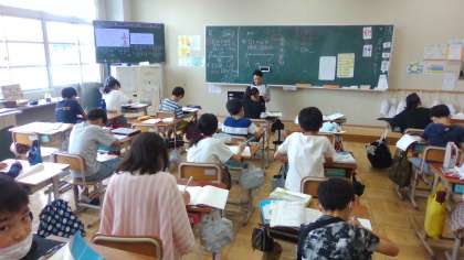 問題文から何算で計算するのかを考え、図や□を使った式で表して考える学習をしています。問題文から何算かを考えるのに苦労しながらも、話し合いながら学習を進めることができました。