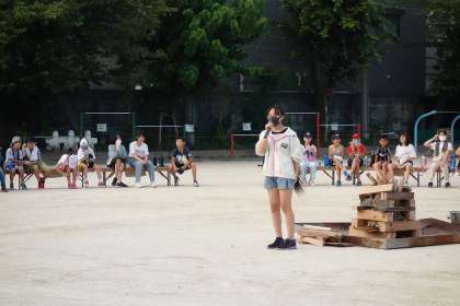 はじめに代表児童の言葉があり、学校キャンプのスタートです。