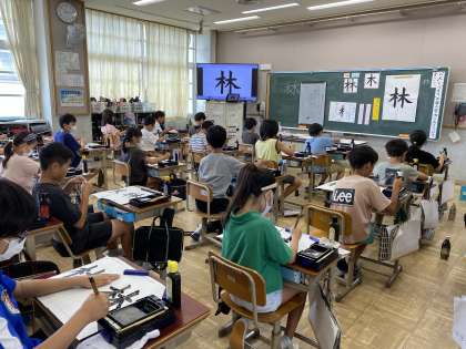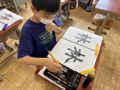 二学期初めての書写の学習をしました。「林」の字を習字で書いています。「はらいの部分が難しい」や「林のバランスに気を付けないと」と自分なりの課題を見つけながら学習することができました。