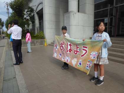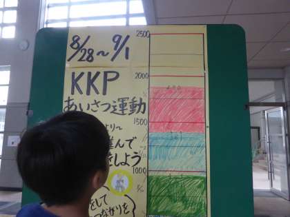 KKPあいさつ運動は今日が最終日でした。最終日ということもありみんな大きな声で「おはようございます。」とあいさつをしてくれました。この1週間で取り組んできたあいさつメートも1000を超えています。たくさんの「おはようが」新町小学校に響きました。