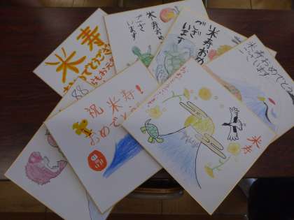 新町小学校区にお住まいで米寿を迎えられる方にお祝いをおくります。お祝いにおくる色紙も完成しました。