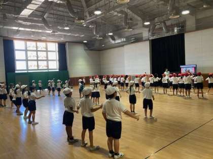 運動会で披露するダンスの練習を頑張っています。みんな楽しそうに体を動かして、振り付けを覚えていました。