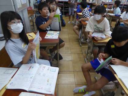 6年生 家庭科〜ナップザック作りに向けて〜 公開日 2023/09/08 更新日 2023/09/08 6年生のページ 家庭科の学習はナップザック作りを行います。今日は作り方を確認してナップザックを配りました。みんなワクワクしながら受け取ってくれました。