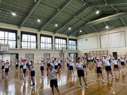 4年生 体育「鳴子踊り」 公開日 2023/09/08 更新日 2023/09/08 4年生のページ 体育館で鳴子踊りの練習をしました。少しずつ踊りも覚える児童も見られるようになりました。今日は体系移動の練習もしました。次の運動場の練習も楽しみですね。