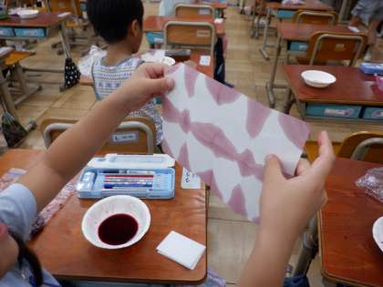 【1年】あさがおの色水遊びをしたよ。 公開日 2023/09/08 更新日 2023/09/08 学校の様子 ずっと大切に育ててきたアサガオを、色水にしてみんなで楽しみました。 「いろんな模様の形ができて楽しい!」「色が違うね!」と、友達と比べて楽しんでいました。